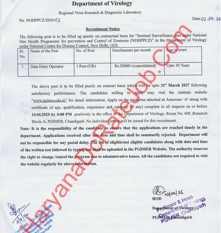 | Chandigarh PGI DEO Vacancy 2026 Official Notice | Official Notice |