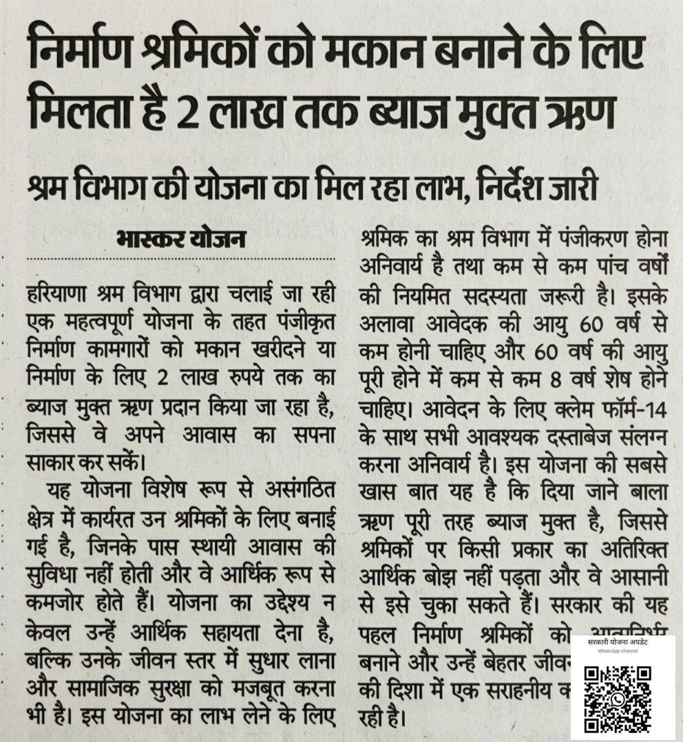 | Scheme Name | Haryana Labour Welfare Board House Loan Scheme |