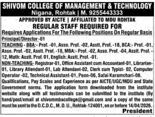 | Shivom College Rohtak Vacancy 2026 Application Form Link | Application Form |